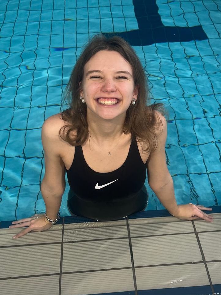 Das Schwimmen und der Umgang mit Wasser begeistern mich sehr. Ich bin aktiv im Schwimmverein, trainiere regelmäßig und nehme als Triathletin an Wettkämpfen teil. Die Vielseitigkeit, Technik und körperliche Herausforderungen im Wasser faszinieren mich – ebenso wie das Gefühl von Freiheit beim Schwimmen.